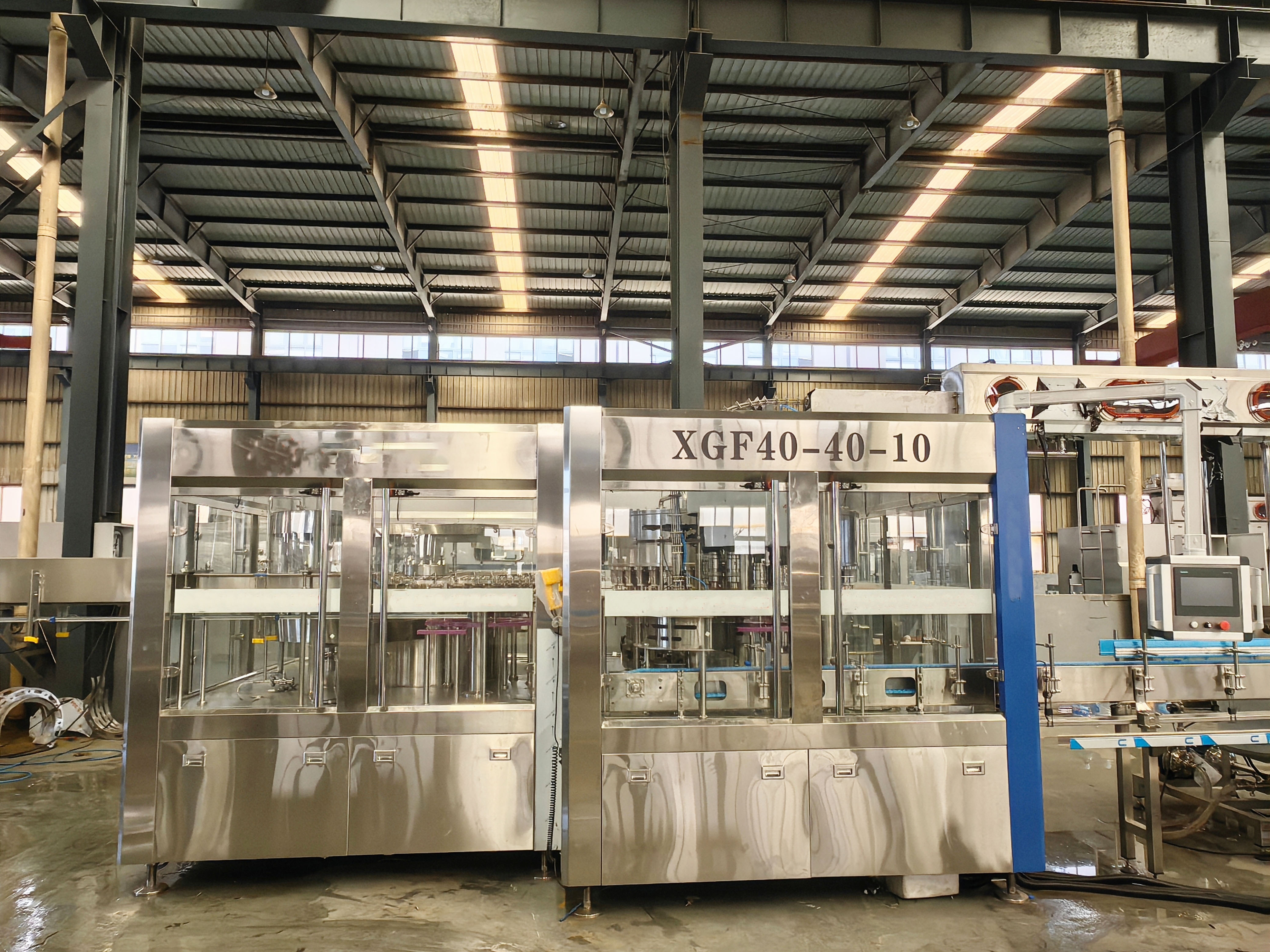 XGF40-40-10三合一灌裝機(jī)主要用于礦泉水、純凈水的灌裝作業(yè)。本機(jī)將沖洗、灌裝、旋蓋三功能合在一個(gè)機(jī)體上,全過(guò)程實(shí)現(xiàn)自動(dòng)化。適用于聚酯瓶、塑料瓶,各部分的適用瓶型調(diào)整采用手柄轉(zhuǎn)動(dòng)實(shí)現(xiàn),輕松自如,簡(jiǎn)便快捷。灌裝方式采用了新型的常壓灌裝,使灌裝速度更快更穩(wěn)定,所以與同規(guī)格的機(jī)器相比本機(jī)的產(chǎn) 量更高,效益更大。本機(jī)采用了先進(jìn)的可編程控制器(PLC)控制機(jī)器的自動(dòng)運(yùn)行,進(jìn)瓶鏈道采用變頻器調(diào)整,與主機(jī)變頻器相互配合使進(jìn)瓶運(yùn)行更穩(wěn)定可靠,光電檢測(cè)各部件的運(yùn)行狀況。自動(dòng)化程度高,操作簡(jiǎn)便。是礦泉水、純凈水生產(chǎn)廠家理想的首先設(shè)備。